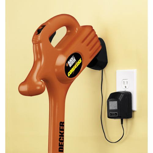 Black & Decker's cordless trimmer uses a .065-inch-diameter cutting line rather than a sharp blade to hack away overgrown grass with enhanced safety. The trimmer cuts an 8-inch breadth for fine pruning and includes a feed system bump to permit the line to move cleanly. To prevent unintentional start up, the trimmer includes an automatic lock-off switch. The trimmer's charger may be wall mounted for convenient trimmer storage while simultaneously recharging. The trimmer should be charged for 24 hours prior to initial use and should recharged regularly. Simple two-step assembly is required. Black & Decker offers a limited two-year warranty in the event of defective parts or construction. The trimmer weighs 6.5 pounds assembled. --Jessica Reuling