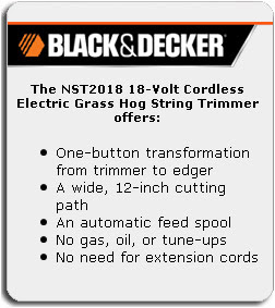 Every home lawn enthusiast needs a reliable trimmer. When it comes to performance in the front or back yard, the Grass Hog 14-inch automatic feed string trimmer and edger provides what you need. This tool is powered by a 4.8 Amp electric motor that spins the line at 9,500 rpm and gives you a 14-inch cutting swath. An Automatic Feed Spool (AFS) system eliminates the need to bump the trimmer against the ground every time the line breaks. And the 30-foot, factory-wound spool is easy to install and replace. Head adjustment is quick and easy, too, when the Groom'N'Edge head rotates 180 degrees; just press the button, rotate the handle and wait for it to lock in place. The patented cord retention system helps prevent accidental unplugging while in use. This trimmer comes equipped with an auxiliary handle for added comfort and control. The handle rotates a full 360 degrees and the soft grip can be moved up and down to ensure the perfect fit, whatever size the operator may be. A flip-down edge guide ensures precise trimming and edging work. At just 5.2 pounds, this product is easy for just about anyone to use. This product is backed by a 2-year full warranty. --Carl Thress